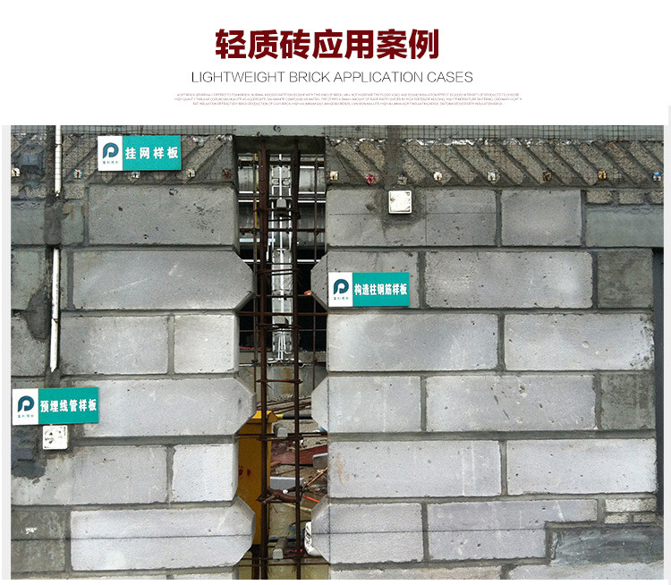 3、 施工性:輕質磚具有良好的可加工性,施工方便簡單,由于塊大、質輕,可以減輕勞動強度,提高施工效率,縮短建設工期。